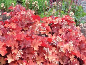 КУСТ ВЫСОТОЙ 25СМ, ШИРИНОЙ ДО 45СМ. ЛИСТЬЯ НЕЖНО-ПЕРСИКОВОГО ДО БРОНЗОВО-КРАСНОГО ЦВЕТА, С ЛЕГКОЙ ВУАЛЬЮ. ЦВЕТЕТ В МАЕ-СЕНТЯБРЕ БЕЛЫМИ КОЛОКОЛЬЧАТЫМИ ЦВЕТКАМИ НА КОРОТКИХ БОРДОВЫХ ЦВЕТОНОСАХ. ПРЕДПОЧИТАЕТ ЛЕГКИЕ, УМЕРЕННО УВЛАЖНЕННЫЕ ПОЧВЫ И ПОЛУТЕНЬ.