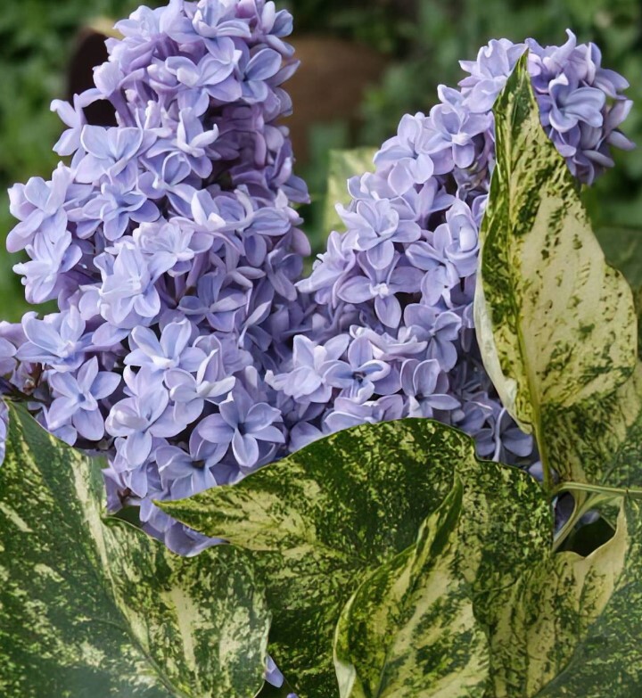 ОРИГИНАЛЬНЫЙ ПЕСТРОЛИСТНЫЙ СОРТ. ВЫСОТОЙ 3М. ЦВЕТКИ ЛИЛОВО-ГОЛУБЫЕ С СИНЕВОЙ, КРУПНЫЕ, ПОЛУМАХРОВЫЕ, АРОМАТНЫЕ. СОЦВЕТИЯ ДО 25СМ. ЦВЕТЕТ ОБИЛЬНО В МАЕ-ИЮНЕ.