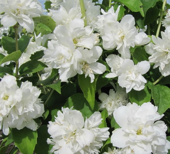 ВЫСОТОЙ 1,5-2,5М. ШИРИНОЙ ОКОЛО 2М. БЕЛЫЕ МАХРОВЫЕ ЦВЕТКИ 4-5СМ В СОЦВЕТИЯХ ПО 3-9ШТ. ПРИЯТНЫЙ АРОМАТ С ФРУКТОВЫМИ НОТКАМИ И ОТТЕНКОМ ЗЕМЛЯНИКИ. ЦВЕТЕНИЕ В ИЮНЕ, НАЧАЛЕ ИЮЛЯ ЛЮБИТ СОЛНЦЕ/ПОЛУТЕНЬ. МОРОЗОСТОЙКИЙ.